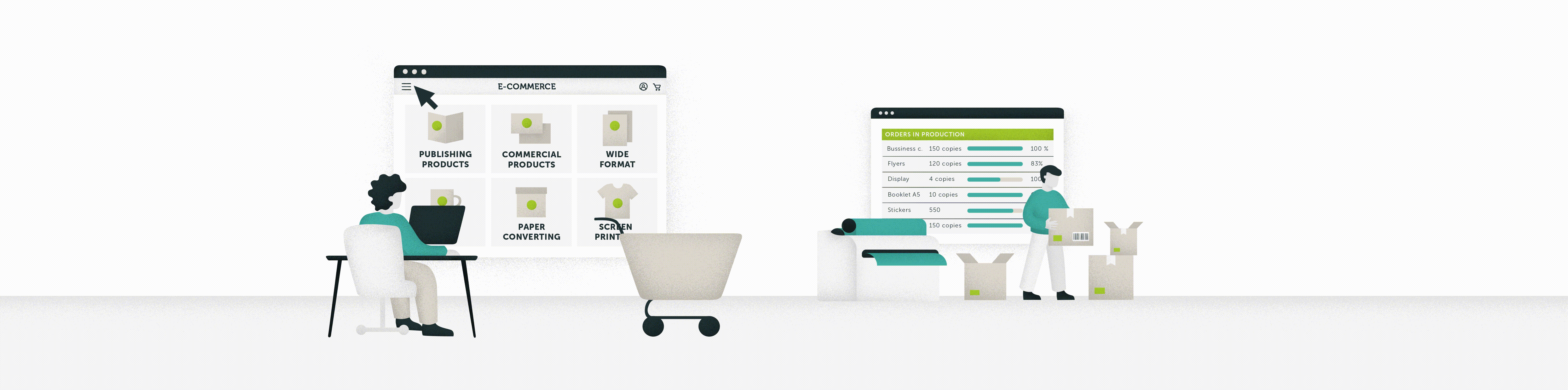 Our solution perfectly meets the needs of those who work in the field of large and small format printing. For example, those who print publishing products such as books, catalogues, magazines, or those who deal with custom gadgets and advertising in general, clothing, screen printing, paper, or just commercial products like a normal e-commerce.