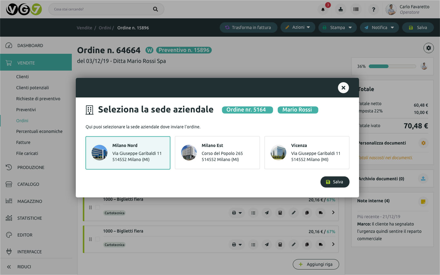 Oltre a quanto già previsto nel Modulo Multiazienda, questa ulteriore integrazione permette di gestire differenti sedi di produzione. Tale Modulo viene usato, per esempio, nel caso in cui l'azienda disponga di vari magazzini con giacenze da contabilizzare separatamente. Infatti consente di: