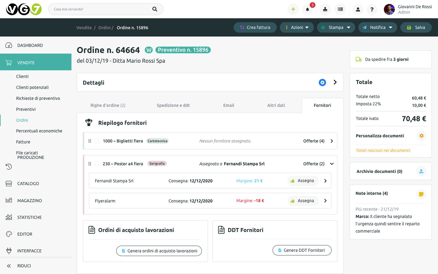 È possibile inoltre permettere al fornitore di accedere alla piattaforma e quindi di gestire tutte le lavorazioni per la sua commessa.